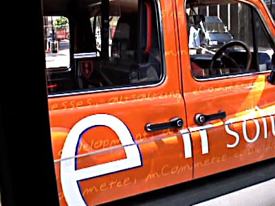 | Advertising was everywhere, including the cabs. | Some had small ads, others were toally painted. | |||||||||